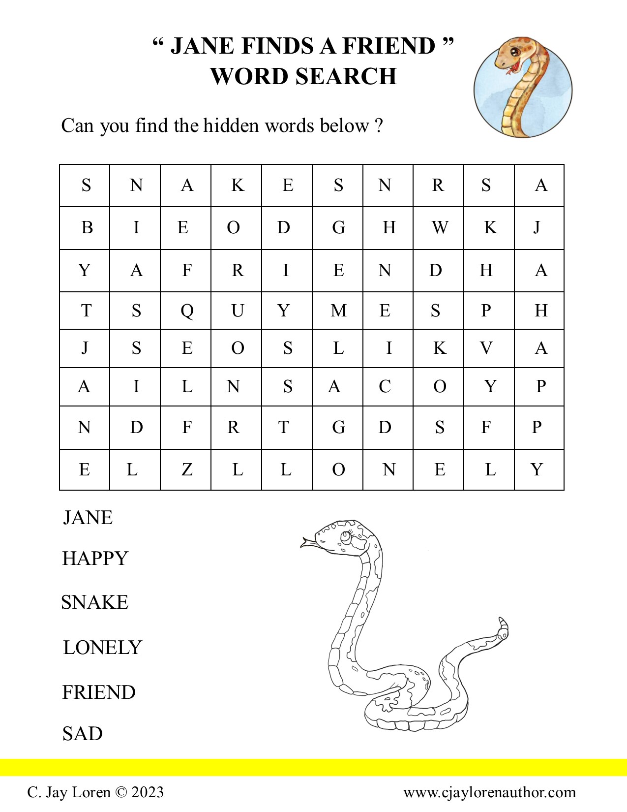 Jane the Snake Word Searches